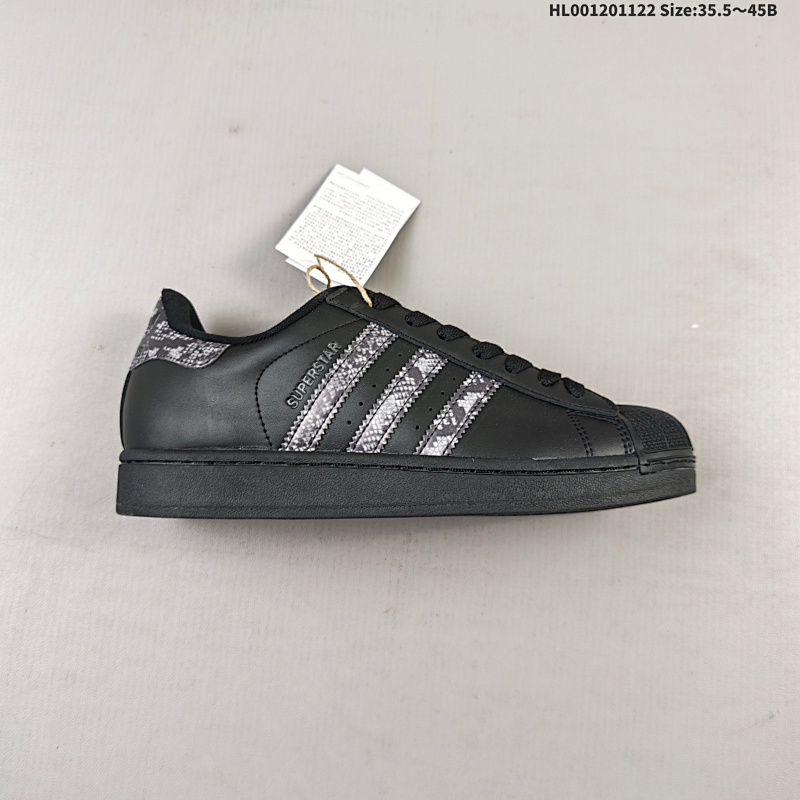 120 真标带半码 Adidas Original Superstar 2 阿迪达斯 低帮 蛇纹黑武士 黑色 男女同款 贝壳头2代防滑耐磨轻便低邦板鞋 鞋身整体以黑色皮革打造,搭配经典黑色贝壳头, |