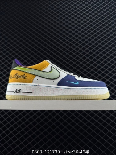 150 Nike/耐克 男女鞋半码制,硬质荔枝纹移膜革材质,原楦开发版型纸版❗️洛杉矶球队主题鞋款,耐克Nike Air Force 1”What The LA“空军一号经典高帮皮革皮百搭休闲运动 莆鞋批发 3