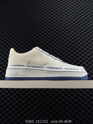 110 詹皇真标联名款Uninterrupted x Nike Air Force 1 "MORE THAN____" 白宝蓝签名涂鸦3M 原装正确荔枝纹皮革材质#原楦开发版型纸版#内置全掌Sole气 莆鞋批发 3
