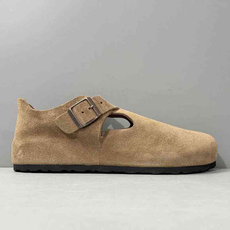 BK版本 平底鞋-棕色反绒 Birkenstock London系列 绒面牛皮革 低帮休闲平底鞋 |
