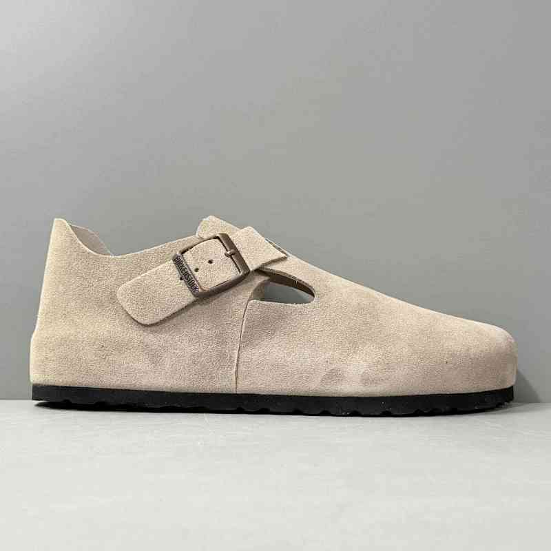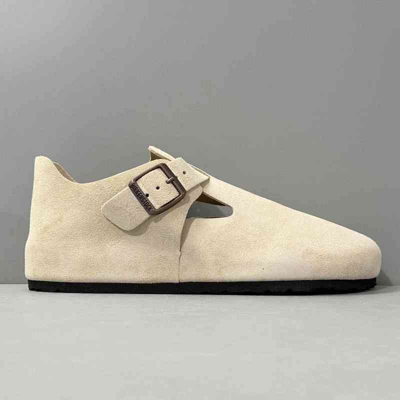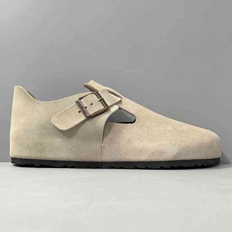 BK版本 平底鞋-米色反绒 Birkenstock London系列 绒面牛皮革 低帮休闲平底鞋 |