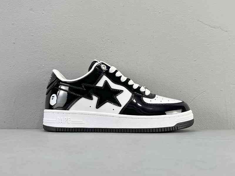 漆皮黑白 BAPE STA 猿人潮牌 扭曲人猿头 时尚潮流低帮板鞋 |