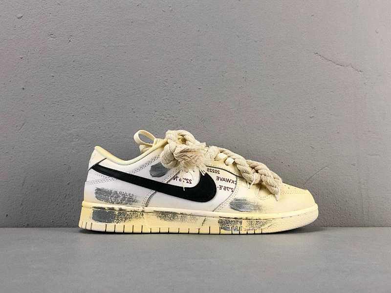 SS版本 米白色/麻绳DD1503-121 定制球鞋 Nike dunk Low “White Sail”热浪制造 氧化做旧 麻绳绑带 浸染 沙漠 复古耐磨低帮板鞋滑板鞋 女款 |
