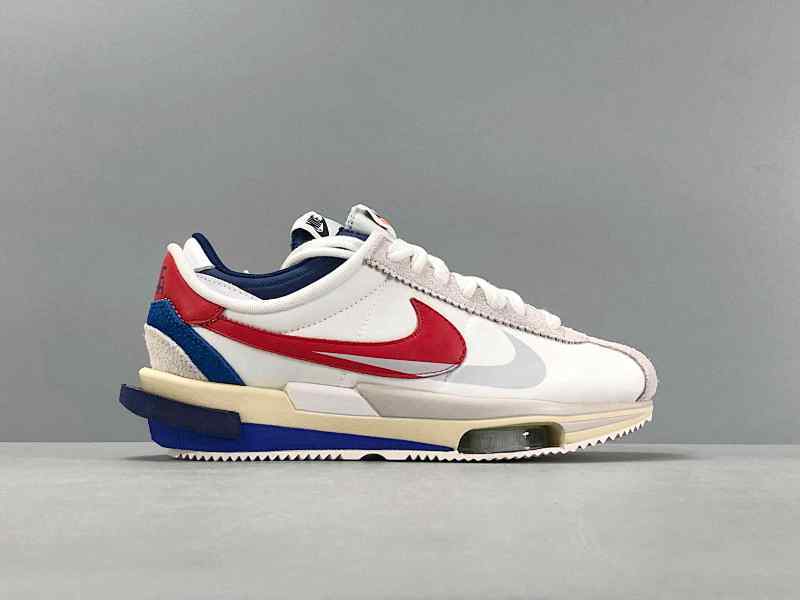 神版 阿甘白红蓝DQ0581-100 耐克华夫Sacai x Nike Cortez SP“White and University Red”潮流复古解构轻便耐磨低帮休闲跑步鞋 男女同款 |