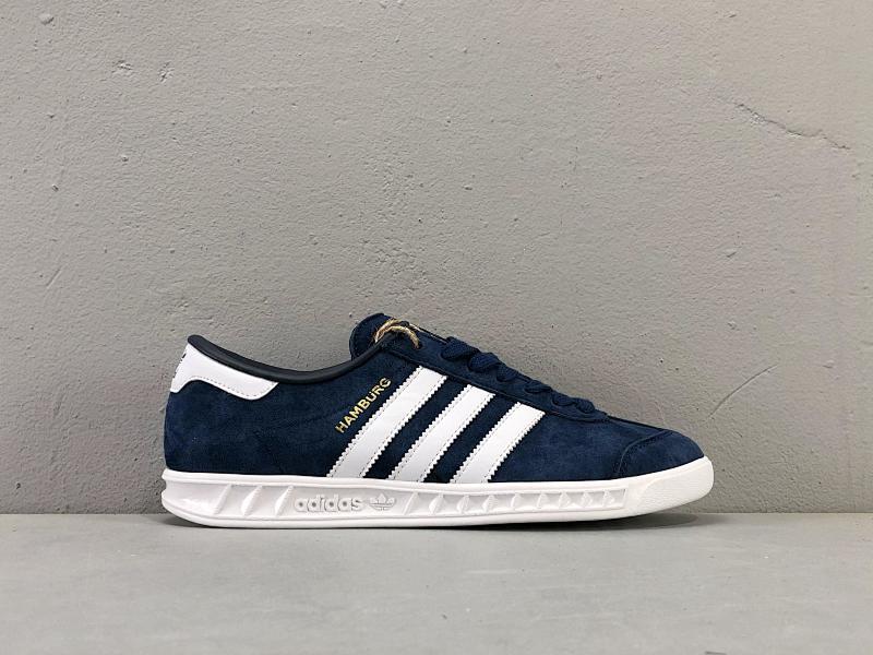 YH头层 深蓝白S74838 阿迪达斯 三叶草 Adidas Originals Hamburg生胶复古百搭耐磨休闲低帮板鞋 男女款 |