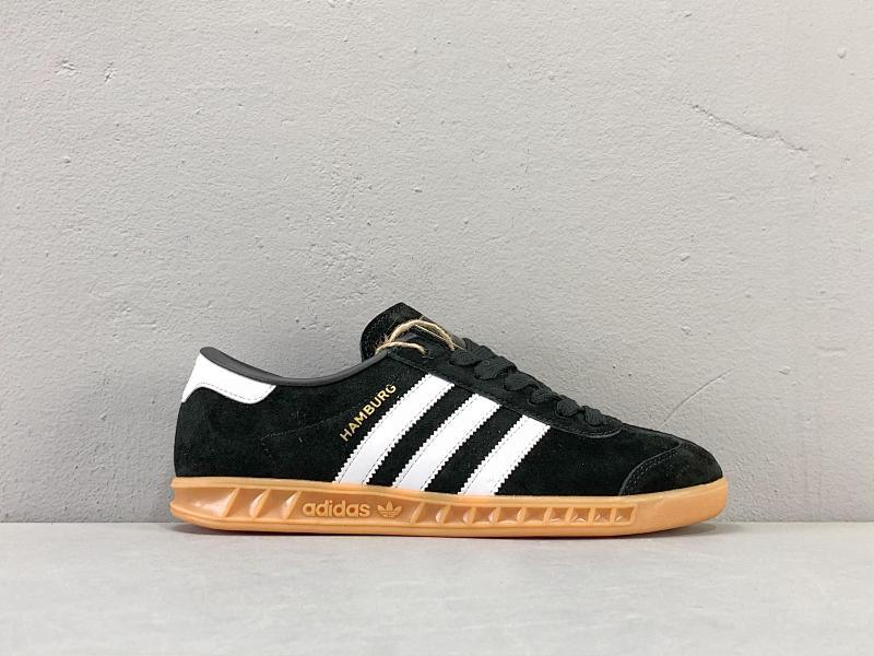YH头层 黑白生胶S76696 阿迪达斯 三叶草 Adidas Originals Hamburg生胶复古百搭耐磨休闲低帮板鞋 男女款 |