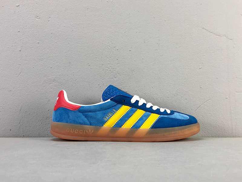 YD普通 GZ古驰蓝黄707848 9STU0 4860 绒面 三叶草 阿迪达斯Adidas Originals x Gucci Gazelle 古驰联名经典休闲板鞋 男女款 耐磨透气 |