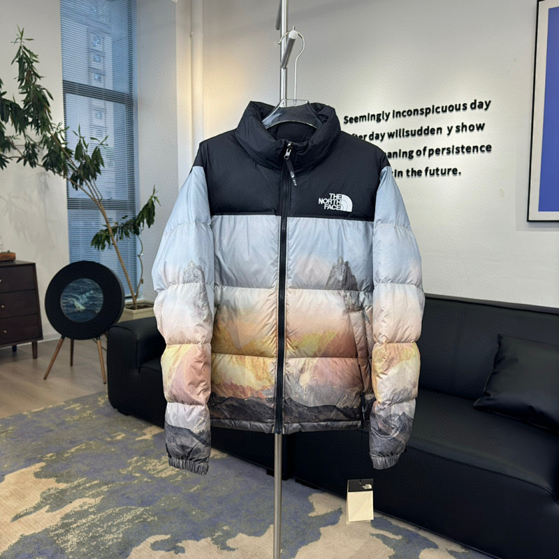 北面羽绒服 地球印花 百特「莆田」货源终端