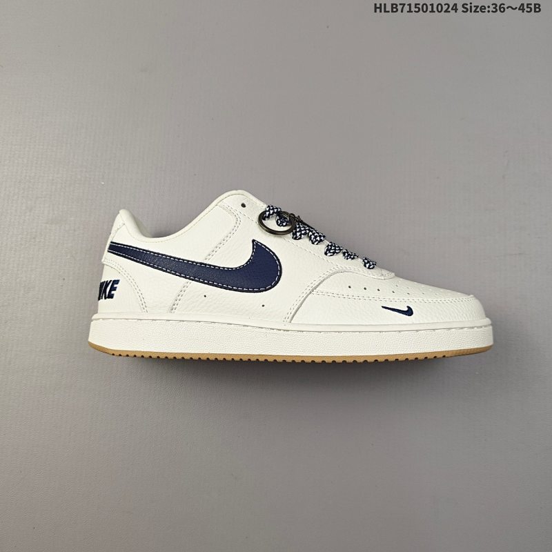 150 耐克NIKE COURT VISION LOW 定制小空军正面、内侧、外侧、前面和后面视角看下这双白又白的小白鞋,它好像是一双经典的糅合。比较舒服简单的经典设计,有层次的皮革剪裁造型鞋面+一个 |