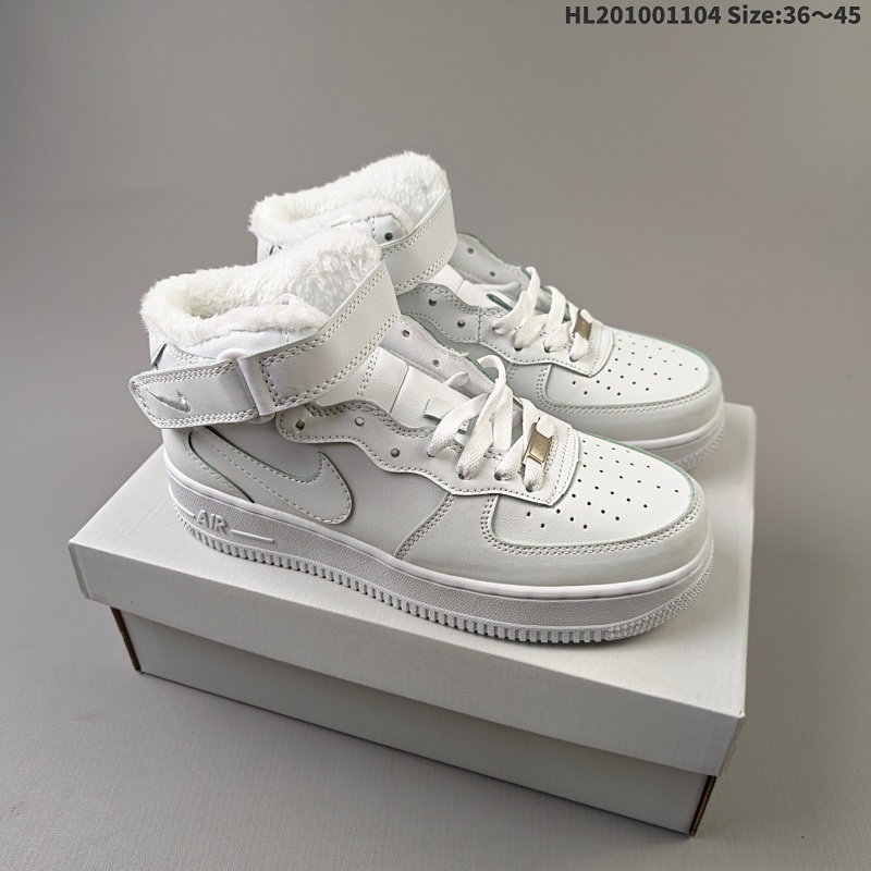 集合100 加绒✅耐克Nike AIR FORCE 1’07空军一号高帮百搭休闲运动板鞋。柔软、弹性十足的缓震性能和出色的中底设计,横跨复古与现代的外型结合,造就出风靡全球三十多年的Force |