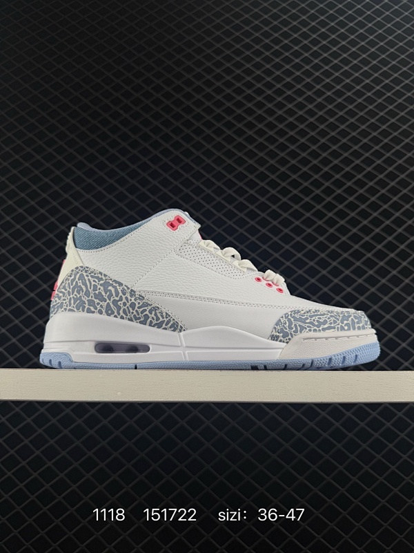 110 Air Jordan 3 Retro "White And Cobalt Bliss" 钴宝蓝 AJ3 乔丹3代 aj3 乔3 冰蓝粉 乔丹篮球鞋系列 鞋身以纯净的白色皮革为基底,营造出清爽干 莆鞋批发 3