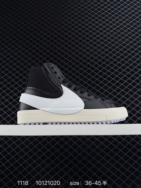 100 耐克 Nike Blazer Mid '77 Jumbo 男女士运动鞋 抓地板鞋革新重塑经典街头人气鞋款。采用人气传统外观,巧搭大号耐克勾勾设计和宽大鞋带。柔软泡绵鞋舌搭配加粗缝线设计,彰显自 莆鞋批发 3