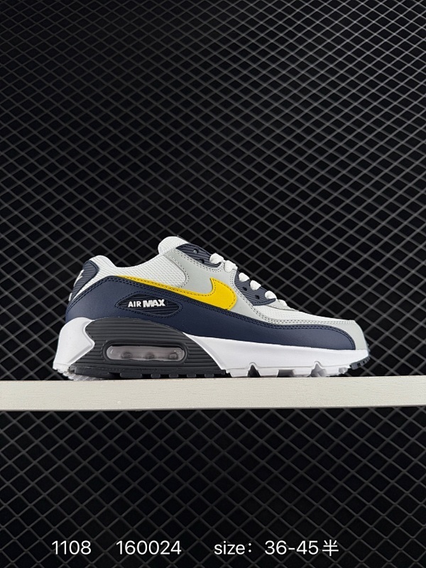 120 耐克Nike Air Max 90 经典复古小气垫缓震跑鞋 鞋面由皮和革织物打造,犀利的条线打造出酷劲十的足视觉效果 网布鞋增面强透气性,穿着为极舒适 经可典视气垫醒目依旧,而脚感更是十软足弹 莆鞋批发 3