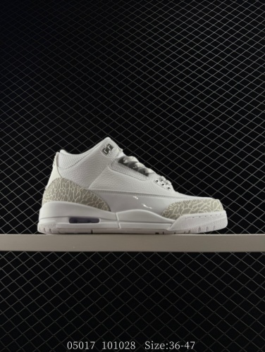 140 Air Jordan 3 Retro "Silver Anniversary" 纯白水泥 AJ3 乔丹3代 aj3 乔3 白水泥 乔丹篮球鞋系列 鞋身以白色为主调,采用优质皮革材质搭配鞋头及后 莆鞋批发 3