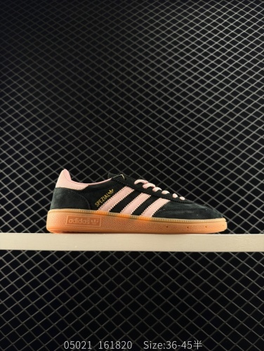 100 阿迪达斯 Adidas HANDBALL SPEZIAL 三叶草学院风复古休闲板鞋 橡胶底柔软绒面革经典运动鞋男女士鞋 圆头、缝合拼接设计、正面绑带、鞋舌部位附有标贴、经典三条杠装饰鞋侧,承载 莆鞋批发 3